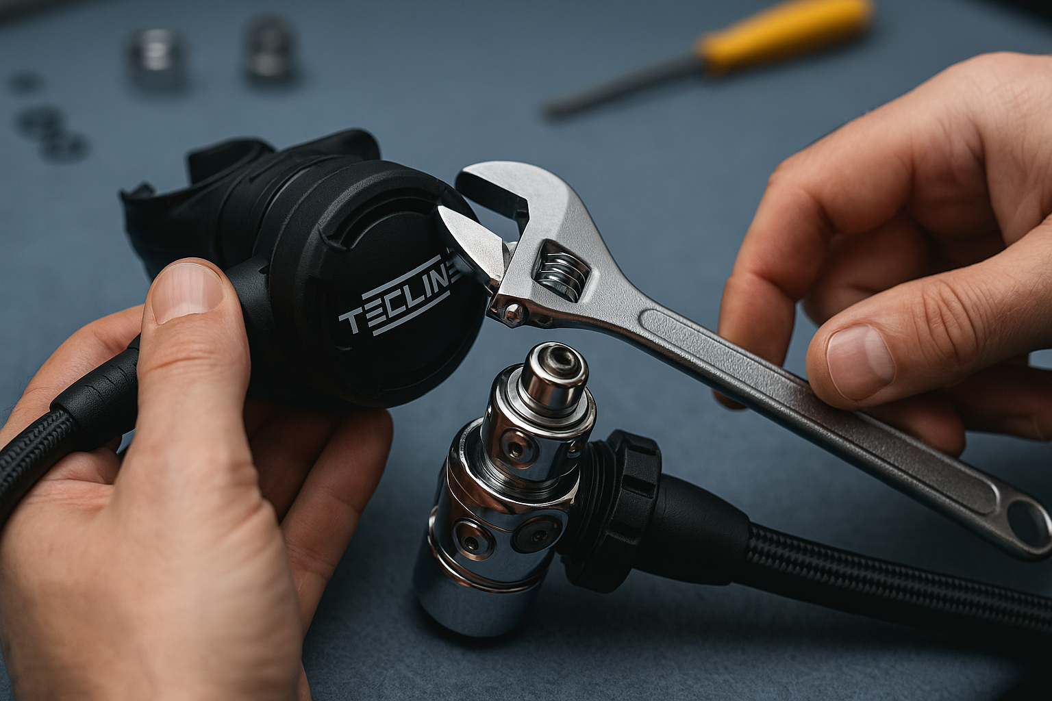 Servizio professionale di revisione completa per erogatori TECLINE e SCUBATEC, eseguito secondo le specifiche del produttore, con controllo accurato e test funzionali finali.